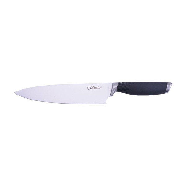 - MR-1446 Nóż szefa kuchni 20 cm • nóż szefa kuchni • materiał wykonania: stal nierdzewna • długość ostrza: 20 cm • grubość ostrza: 1,8 mm • długość produktu: 33,5 cm • silikonowy uchwyt