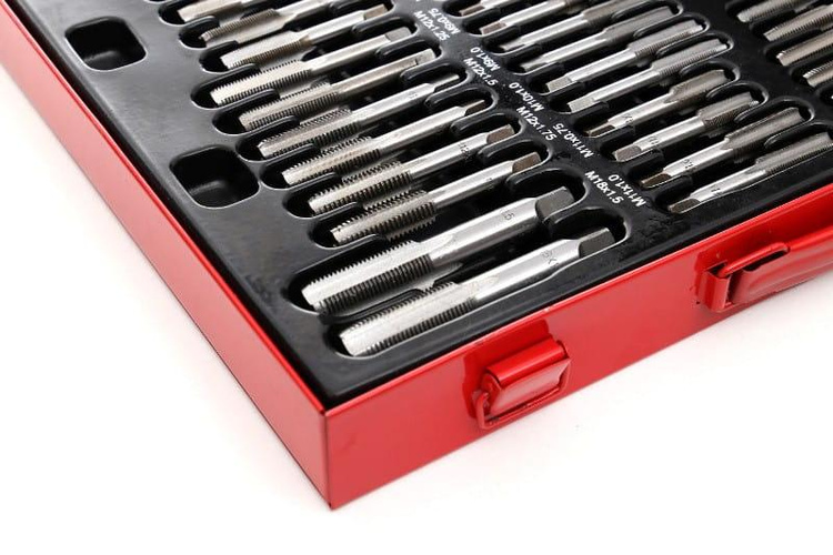 Zestaw 110 gwintowników i narzynek. Wykonane z najwyższej jakości utwardzanej stali, sprawdzi się w każdym warsztacie oraz garażu. Zestaw służy do naprawy połączeń gwintowanych każdego rodzaju w większości materiałów. Dzięki dużej ilości elementów zestaw jest bardzo uniwersalny.Całość spakowana w solidnej metalowej walizce z wyznaczonymi miejscami na każde narzędzie, by umożliwić utrzymanie porządku. SKŁAD ZESTAWU ( Ilość: 110 elementów ) • 35 gwintowników stożkowych: M2X0,4mm; M3x0,5mm; M4x0,7mm; M5x0,9mm; m6x0,75mm; M6x1,0mm; M7x0,75mm; M7x1,0mm; M8x0,75m; M8x1,0mm; M8x1,25mm, M9x0,75mm; M9x1,0mm; M9x1,25mm; M10x0,75mm; M10x1,0mm; M10x1,25mm; M10x1,5mm; M11x0,75mm; M11x1,0mm; M11x1,25mm; M11x1,5mm; M12x0,75mm; M12x1,0mm; M12x1,25mm; M12x1,5mm; M12x1,75mm; M14x1,0mm; M14x1,25mm; M14x1,5mm; M14x2,0mm; M16x1,5mm; M16x1,0mm; M16x2,0mm; M18x1,5mm • 35 gwintowników wtyczkowych - rozmiary jak wyżej• 35 narzynek - rozmiary jak wyżej• 2 gwintowniki nasadowe - rozmiary: M3-M12, M6-M20 • 2 narzynki nasadowe - rozmiary: 25mm, 38O/D • 1 gwintownik nasadowy T-type - rozmiar: T-Type M3-M6 Potrzebujesz pomocy? Masz pytania?Zadaj pytanie a my odpowiemy niezwłocznie, najciekawsze pytania i odpowiedzi publikując dla innych.