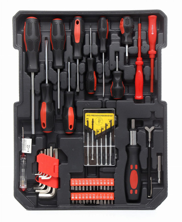 Coś dla profesjonalistów, którzy nie godzą się na kompromis. Narzędzia dzięki którym praca nabiera tempa, staje się bezpieczniejsza i bardziej wygodna. Aż 188 elementów umieszczonych w aluminiowej walizce. Solidność, pewność i ergonomia. Zestaw w którym umieszczono kilka wyjmowanych kaset, obejmuje zarówno: klucze płaskie, nasadowe, grzechotkę, młotek, zestaw szczypiec, poziomice, zaciski, taśmę mierniczą, taśmę izolacyjną, nóż, komplet gwoździ i wkrętów, a także wkrętaki i końcówki do bitów. Mając wszystkie narzędzia umieszczone w jednym miejscu, znalezienie tego najbardziej potrzebnego zajmuje tylko chwilę. Polecamy ten produkt wszystkim, dla których liczy się wysoka jakość i dobra cena. Niezbędny we wszelkich profesjonalnych warsztatach samochodowych, remontowych oraz w firmach produkcyjnych. Wykonana ze stali chromowo-wandowej (CrV) - specjalna odmiana stali, używana do produkcji narzędzi. W przypadku tej odmiany stali jej hartowność zostaje zwiększona poprzez zastosowanie chromu i wandu jako dodatków stopowych. Chrom gwarantuje odporność stali na korozję, utlenianie, ścieranie i dużą wytrzymałość w wysokiej temperaturze. Dodatek wandu hamuje wzrot ziaren podczas obróbki termicznej, zwiększając jednocześnie ciągliwość zarówno w postaci hartowanej, jak i odpuszczonej. Skład zestawu: 8" klucz nastawny9.5" szczypce hydrauliczne6" szczypce z długim nosem6" szczypce ukośne6" szczypce kombinerki nastawne klucze oczkowe płaskie: 8, 9, 10, 11, 12, 13, 15, 17mm uchwyt na bitychwytakuchwyt magnetycznypróbnik napięcia6x precyzyjny śrubokręt (1.4, 1.8, 2.4, 3.0, #0, #1)9x klucz sześciokątny z uchwytem (1.5, 2, 2.5, 3, 4, 5, 6, 8, 10)24 bity z 2 uchwytami 11x śrubokręt:(-) 4x100mm, 5x75mm, 6x38mm, 6x100mm(+) 3x75mm, 5x75mm, 6x38mm, 6x100mm, 8x150mmIzolowany (+) 4x100mm, (-) 4x100mm Nasadki:1/4" DR* 4, 4.5, 5, 5.5, 6, 7, 8, 9, 10, 11, 12, 13, 14mm1/2" DR* 8, 9, 10, 11, 12, 13, 14, 15, 16, 17, 18, 19, 20, 21mm Klucz do świec 1/2" 16 i 21mmZłącze przegubowe 1/2"Klucz przesuwny 1/2"Złącze przegubowe 1/4"Przedłużki 1/4" *2"&4"Klucz przesuwny 1/4:Przedłużka 1/2" DR*5"Grzechotka zapadkowa 1/2" i 1/4"Rękojeść obrotowa 2x zacisk nylonowy 3.5"pudełko z 70 szt akcesoriów (gwoździe, pinezki, kołki, wkręty)młotekzaciskarkamiara 3m9" poziomicataśma izolacyjnanóż4 plastikowe pudełka narzędziowewalizka aluminiowa Potrzebujesz pomocy? Masz pytania?Zadaj pytanie a my odpowiemy niezwłocznie, najciekawsze pytania i odpowiedzi publikując dla innych.