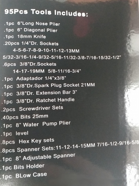 ZESTAW NARZĘDZI 95 ELEMENTÓW Coś dla profesjonalistów, którzy nie godzą się na kompromis. Narzędzia dzięki którym praca nabiera tempa, staje się bezpieczniejsza i bardziej wygodna. Aż 95 elementów umieszczonych w walizce. Solidność, pewność i ergonomia. Zestaw w którym umieszczono kilka wyjmowanych kaset, obejmuje zarówno: klucze płaskie, nasadowe, grzechotkę, zestaw szczypiec, zaciski, imbusy, nóż, a także wkrętaki i końcówki do bitów. Mając wszystkie narzędzia umieszczone w jednym miejscu, znalezienie tego najbardziej potrzebnego zajmuje tylko chwilę. Polecamy ten produkt wszystkim, dla których liczy się wysoka jakość i dobra cena. Niezbędny we wszelkich profesjonalnych warsztatach samochodowych, remontowych oraz w firmach produkcyjnych. Wykonana ze stali chromowo-wandowej (CrV) - specjalna odmiana stali, używana do produkcji narzędzi. W przypadku tej odmiany stali jej hartowność zostaje zwiększona poprzez zastosowanie chromu i wandu jako dodatków stopowych. Chrom gwarantuje odporność stali na korozję, utlenianie, ścieranie i dużą wytrzymałość w wysokiej temperaturze. Dodatek wandu hamuje wzrost ziaren podczas obróbki termicznej, zwiększając jednocześnie ciągliwość zarówno w postaci hartowanej, jak i odpuszczonej. Skład zestawu: 1x Szczypce igłowe 6"1x Szczypce boczne 6"1x Nóż z łamanym ostrzem20x Nasadki 1/4": 4mm; 5mm; 6mm; 7mm; 8mm; 9mm; 10mm; 11mm; 12mm; 13mm; 14mm6x Nasadki 3/8": 14mm; 17mm; 19mm;1x Adapter 1/4" - 3/8"1x Nasadka 3/8" do świec -21mm1x Przedłużka 3/8" długości 3"1x Klucz grzechotka 3/8"2x Śrubokręt - płaski oraz gwiazdka40x bity: płaskie/ gwiazdka/ krzyżak/ imbus/ torx1x Klucz nastawny 8"1x Mini poziomica z dwoma libelkami8x Klucze imbusowe8x Klucze płaskooczkowe: 11mm;12mm;14mm;15mm;1x Szczypce nastawne 8"Uchwyty na bityPlastikowa walizka Potrzebujesz pomocy? Masz pytania?Zadaj pytanie a my odpowiemy niezwłocznie, najciekawsze pytania i odpowiedzi publikując dla innych.