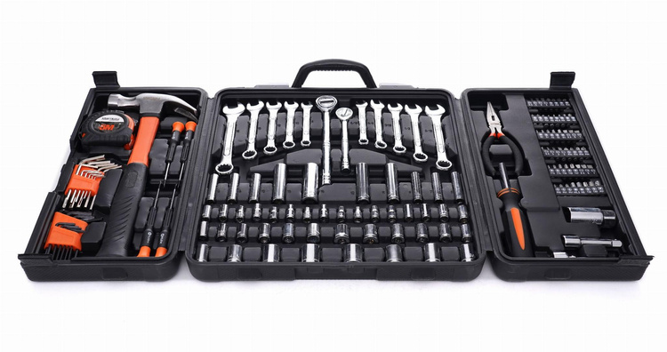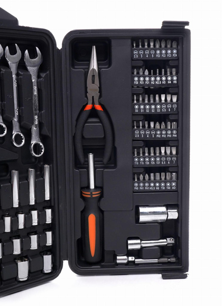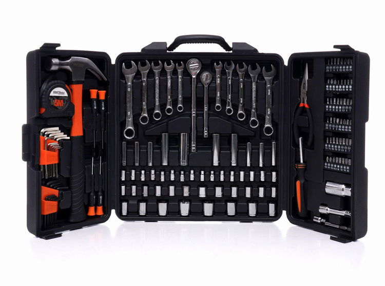 ZESTAW NARZĘDZI 140 ELEMENTÓWKD10462 Coś dla profesjonalistów, którzy nie godzą się na kompromis. Narzędzia dzięki którym praca nabiera tempa, staje się bezpieczniejsza i bardziej wygodna. Aż 140 elementów umieszczonych w walizce. Mając wszystkie narzędzia umieszczone w jednym miejscu, znalezienie tego najbardziej potrzebnego zajmuje tylko chwilę. Polecamy ten produkt wszystkim, dla których liczy się wysoka jakość i dobra cena. Niezbędny we wszelkich profesjonalnych warsztatach samochodowych, remontowych oraz w firmach produkcyjnych. Wykonana ze stali chromowo-wandowej (CrV) - specjalna odmiana stali, używana do produkcji narzędzi. W przypadku tej odmiany stali jej hartowność zostaje zwiększona poprzez zastosowanie chromu i wandu jako dodatków stopowych. Chrom gwarantuje odporność stali na korozję, utlenianie, ścieranie i dużą wytrzymałość w wysokiej temperaturze. Dodatek wandu hamuje wzrost ziaren podczas obróbki termicznej, zwiększając jednocześnie ciągliwość zarówno w postaci hartowanej, jak i odpuszczonej. Skład zestawu:1pc - Measure Tape 5m1pc - Claw Hammer 16oz22pcs - Hex key wrenchesMetric 1.27/1.5/2/2.5/3/3.5/4/4.5/5/5.5/6mmInch 1/20", 1/16", 5/64", 3/32", 7/64", 1/8", 9/64", 5/32", 3/16" 7/32", 1/4"4pcs - Precision screwdrivers PH 0x50/PH 1x50/SL2.4x50/SL3.0x50mm10pcs - Combination WrenchesMetric 8-10-12-13-15mmInch 5/16"-3/8"-7/16"-1/2"-9/16"2pcs-Ratchet socket handles 1/4" and 3/8"4pcs - 3/8" Dr. Deep Sockerts 11/12/13/15mm6pcs - 1/4" Dr. Deep Sockerts 5/6/7/8/9/10mm28pcs - 1/4" Dr.Deep SocketsMetric 4/4.4/5/5.5/6/6.5/7/7.5/8/9/10/11/12/13mmInch 5/32"-3/16"-7/32"-1/4"-9/32"-5/16"-11/32"-3/8"-13/32"-7/16"-15/32"-1/2"-17/32"-9/16"8 pcs 3/8" Dr. SocketsMetric 13/14/17/19mmInch 9/16"-5/8"-11/16"-3/4"1pc - Long Nose Plier 6"1pc - Bit Driver Handle 50mm48pcs - 1/4" Bits Set25mm/10PC-SL(3-4-5-5.5-6)mm*2pc6pc-PH:#0-(#1-#2)*pcs-#36pc-pz: #0-(#1-#2)*2pc-#37pc-T10-T15-T20-T25-T27-T30-T407pc-h: 2-2.5-3-4-5-5.5-6mm1pc-3/8" Dr Spak Plug Socket 21mm1pc-3/8" Dr. Extension Bar"1pc-Bit Extension Bar 60mm1pc- Adaptor 3/8(F)*1/4(M) Potrzebujesz pomocy? Masz pytania?Zadaj pytanie a my odpowiemy niezwłocznie, najciekawsze pytania i odpowiedzi publikując dla innych.