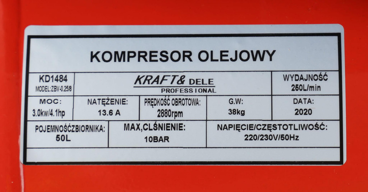 KOMPRESOR OLEJOWY SPRĘŻARKA 50L KD1484 - KRAFT&DELE