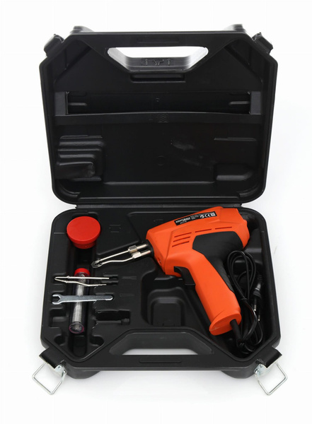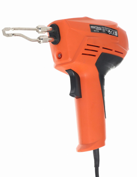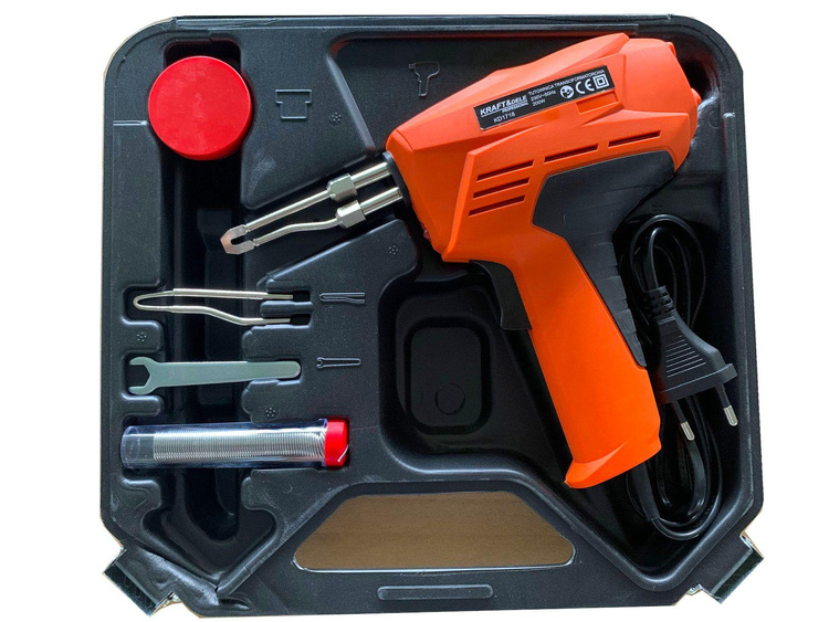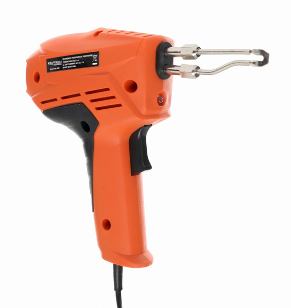 LUTOWNICA TRANSFORMATOROWA 200W KRAFT&DELE KD1718 Lutownica transformatorowa marki KRAFT&DELE to poręczne narzędzie przeznaczone zarówno dla profesjonalistów jak i amatrów.Jej zwarta i solidna budowa gwarantuje żywotnośc i komfort pracy. Lutownica pistoletowa jest przeznaczona do lutowania na płytkach obwodów drukowanych, zgrzewania plastiku oraz wypalania w drewnie i skórze. Posiada wbudowaną diodę, która ułatwia pracę z lutownicą. Pistolet oraz końcówka lutownicza zostały skonstruowane w taki sposób, aby można było łatwo zdemontować w celu dokonania jakiejkolwiek wymiany. SPECYFIKACJA PRODUKTU: Zasilanie: 230V/50Hz Moc: 200W Maksymalna temperatura: 680*C Czas nagrzewania: 12s Czas stygnięcia: 48s Przewód zasilający: 135cm Klasa izolacji: II Waga neto: 0,8kg SKŁAD ZESTAWU: Lutownica pistoletowa 200W Cyna w pojemniczku Kalafonia Zapasowy grot Klucz Oryginalne wygodne, poręczne opakowanie Potrzebujesz pomocy? Masz pytania?Zadaj pytanie a my odpowiemy niezwłocznie, najciekawsze pytania i odpowiedzi publikując dla innych.