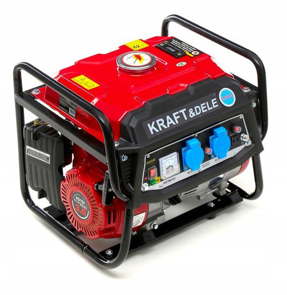 GENERATOR PRĄDOTWÓRCZY AGREGAT1500W / 230V / 3KM KD146 PARAMETRY TECHNICZNE PRODUKTU Marka: KRAFT&DELE Model: KD146 Napięcie: 230V / 50Hz - jednofazowy Silnik: 4-suwowy chłodzony powietrzem Ilość gniazd: 2x 230V / 1x 12V Moc silnika: 2,2 kW / 3 KM Moc maksymalna prądnicy: 1500W Moc ciągła prądnicy: 1300W Woltomierz: tak Wskaźnik poziomu paliwa: tak Rozruch: ręczny Pojemność zbiornika paliwa: 5L Miedziana prądnica: nie Zasilanie: benzyna bezołowiowa 95 Materiały: stal nierdzewna, aluminium, tworzywo sztuczne Osadzony na poduszkach amortyzujących: tak Waga: 22 kg SKŁAD ZESTAWU: • Agregat prądotwórczy KD146• Klucze do świec, śrubokręt • Kable do ładowania akumulatorów • Wtyczka 2x 230V • Instrukcja obsługi w j. polskim • Oryginalne opakowanie • Paragon lub FV. OPIS I CECHY TOWARU Przenośny agregat prądotwórczy jednofazowy o oznaczeniu KD146 marki Kraft&Dele przeznaczony jest do generowania prądu zmiennego 220V-230V za pomocą silnika spalinowego japońskiej konstrukcji OHV 4-suwowego o mocy 3KM oraz mocy maksymalnej prądnicy 1500W. Agregat idealnie sprawdza się na budowach, w domach, w domach letniskowych, kempingach i wszędzie tam, gdzie potrzeba nam pewnego źródła prądu. Silnik agregatu posiada chromowany tłok, dlatego charakteryzuje się cichą i równą pracą, a przy tym jest bardzo oszczędny. Gumowe stabilizatory i poduszki silnika agregatu zapewniają tłumienie drgań i zminimalizowanie hałasu. Agregat wyposażony jest w woltomierz, a także wyjście 12V umożliwiające ładowanie akumulatora. Uwaga! Moce agregatów prądotwórczych u sprzedawców są często zawyżane, zwróć uwagę na wagę agregatu. Prawdziwa, nie oszukana maksymalna moc naszego agregatu wynosi 1500W. Oferujemy państwu bardzo wygodny system gwarancyjny. Dajemy 12 miesiące gwarancji przy zakupie sprzętu z paragonem oraz z fakturą VAT. Posiadamy bazę części do naszych urządzeń. Moc maksymalna:mniej niż 1500 W Parametry bezpieczeństwa - Bezpieczeństwo rodzaj ostrzeżenia