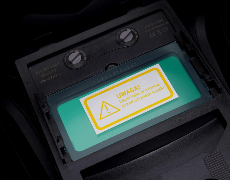 Profesjonalna samościemniająca przyłbica spawalnicza przeznaczona do pracy podczas spawania takimi metodami jak MMA, MIG MAG i TIG.Funkcja samościemniająca – czujnik umieszczony w kasecie filtrującej automatycznie identyfikuje rozpoczęcie spawania dając sygnał samościemnienia się filtra, po zakończeniu spawania filtr wraca do stanu rozjaśnienia.Przyłbica zasilana jest bateriami, które ładują się podczas pracy za pomocą ogniwa fotowoltaicznego (nie ma konieczności wymieniania baterii).Przyłbica posiada regulację zaciemnienia w zewnętrznej części urządzenia, w dobrze dostępnym miejscu. Stan rozjaśniania: 4 DINStopień ochrony w stanie zaciemnionym: 9-13 DINOchrona oczu wg. normy: DIN, ISO, EN175 EN379, ANSI Z87.1-2015, CSA Z94.3-2015.Ochrona twarzy wg. normy: EN175Pole widzenia: 92 mm x 42 mmCzas reakcji: nie większy niż 0,0001 sZabezpieczenie UV/IR: DIN16 przez cały czasRozmiar wkładu: 110 x 90 x 9mm (4.33” x 3.54” x 0.35”) Parametry bezpieczeństwa - Bezpieczeństwo rodzaj ostrzeżenia