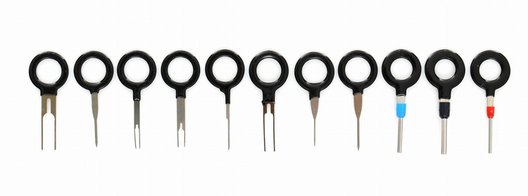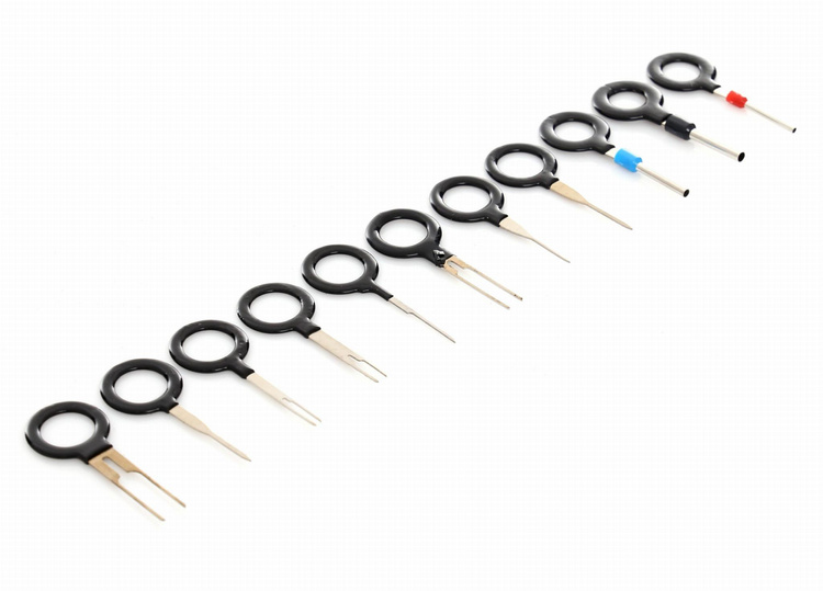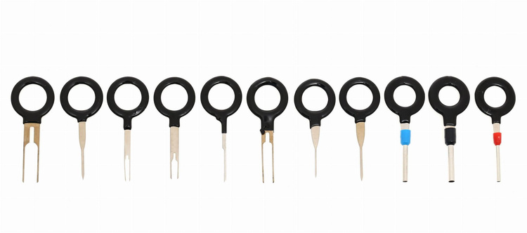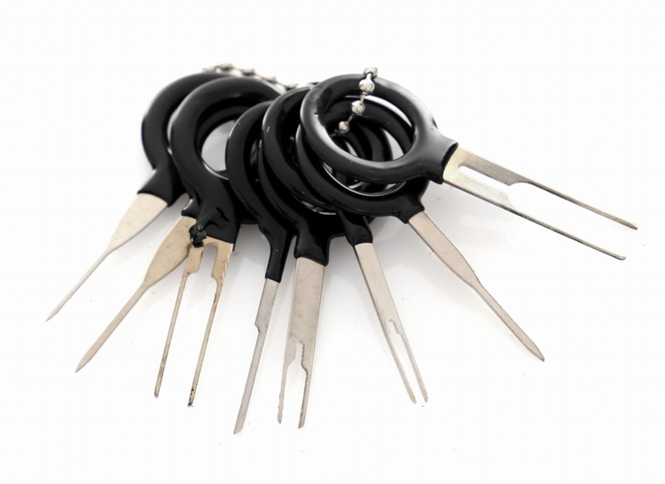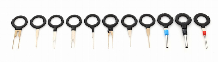 Zestaw 11 kluczy do demontażu pinów, konektorów. Ich rączka pokryta jest gumą, która zwiększa komfort pracy. Taki zestaw jest niezbędnym sprzętem każdego elektryka/ elektronika. Jest niezwykle przydatny przy przeróbkach i naprawach instalacji elektrycznej w samochodzie, motocyklu, łodzi, a także w domu przy naprawach agd, rtv czy komputerów. Wyjmaki mają ergonomiczny kształt, dzięki czemu demontaż jest bardzo łatwy. Można pracować także na urwanym pinie lub zagiętej blaszce konektora. A co najważniejsze- wyjmaki nie uszkadzają pinów. Parametry bezpieczeństwa - Bezpieczeństwo rodzaj ostrzeżenia