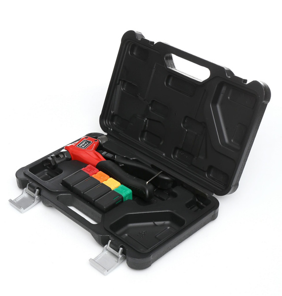 Profesjonalna nitownica ręczna model KD10551 polskiej marki KRAFT&DELE. Wykonana z najwyższej jakości materiałów, w tym stali oraz aluminium. Nitownica ręczna do nitonakrętek współpracuje z nitami wykonanymi z materiałów: stal nierdzewnastalaluminium Nitownica KD10551 posiada 4 rozmiary końcówek dostosowanych do nitonakrętek.Umożliwia wykonanie połączenia nitowego z gwintem wewnętrznym.Gumowane rękojeści i długie ramiona oraz wyważenie narzędzia mają pozytywny wpływ na wygodę użytkowania sprzętu oraz jego ergonomię pracy.Całość zapakowana w poręczną walizkę. SKŁAD ZESTAWU• Nitownica KD10551 • Oryginalne opakowanie• Paragon lub FV. Parametry bezpieczeństwa - Bezpieczeństwo rodzaj ostrzeżenia