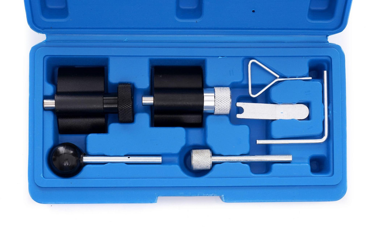 Profesjonalny przyrząd do blokowania kół rozrządu. Zestaw umożliwia unieruchomienie kół zębatych rozrządu w pozycji serwisowej, podczas wymiany paska rozrządu. Specjalny kształt blokad pozwala na precyzyjne ustawienie punktów kontrolnych zapłonu. Blokady unieruchamiają koło zębate rozrządu i wału korbowego oraz koło napinacza paska. Polecane do użytku zawodowego w specjalistycznych serwisach samochodowych. Całość zestawu zapakowana w praktycznej walizkęZestaw przeznaczony jest do wymiany paska rozrządu w specjalistycznych serwisach motoryzacyjnych. Umożliwia unieruchomienie kół zębatych w pozycji serwisowej. Dzięki swojemu kształtowi pozwala precyzyjnie ustawić punkty kontrolne zapłonu. 4 blokady unieruchamiają koło zębate i wał korbowy, a szpilka koło napinacza paska. Pasuje do silników: 3 i 4 cylindrowe 1,2; 1,4; 1,9 TDI oraz 2,0 SDI i TDI w samochodach VW, Seat, Ford, Audi oraz SkodaSKŁAD ZESTAWU:2x blokada wału korbowego2x blokada wałka rozrząduszpilka blokująca napinaczporęczna walizka Parametry bezpieczeństwa - Bezpieczeństwo rodzaj ostrzeżenia