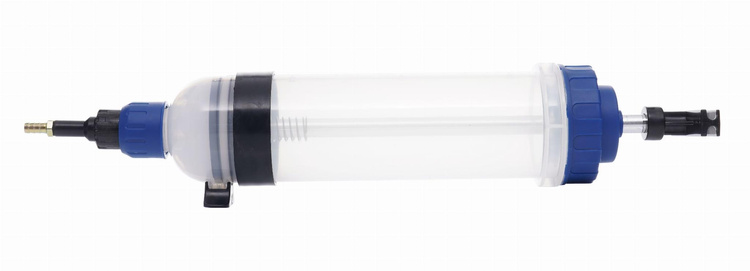 Ręczna strzykawka do oleju o pojemności 1500ml. Służy do wstrzykiwania płynów eksploatacyjnych bądź odsysania oleju z ciężko dostępnych miejsc tj. skrzynia biegów, mostów napędowych itp. Przeźroczysty zbiornik z czytelną podziałkąPojemność 1500mlGumowe uszczelnienie zapobiegające wyciekomSolidna konstrukcjaWygodna duża rączka Skład zestawu:- Strzykawka do oleju KD1456- Wężyk ssący i inne przewody i złącza do odsysania- Oryginalne opakowanie Parametry bezpieczeństwa - Bezpieczeństwo rodzaj ostrzeżenia