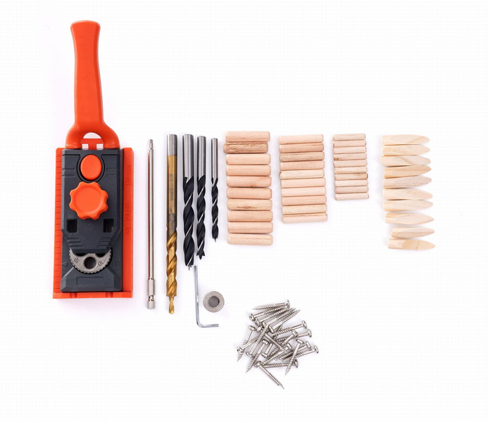Do wykonywania otworów dla połączeń narożnikowych, typu "E" oraz "L" przy użyciu kołków 6, 8, 10 lub 12 mm w drewnie i płytach wiórowych o grubości od 12 mm do 38 mm.Nawierca dwie części jednocześnie do utworzenia doskonałego rezultatu.Do użycia z większością wiertarek ręcznych oraz zasilanych akumulatorem.Przeznaczone dla połączeń kołkowych:- 6 mm, 8 mm, 10 mm, 12 mm- do płyt o grubości 12-38 mm.Niezbędne każdemu profesjonaliście jak i amatorowi. W znacznym stopniu ułatwia i przyśpiesza pracę dbając przy tym na jakość i precyzję wykonania.Urządzenie posiada znakomitą precyzję, a jego zaletą jest łatwa obsługa.Elementy łączone ze sobą za pomocą przyrządu nie noszą żadnych śladów po nim.Perfekcyjnie wyznacza miejsce do wycięcia otworu, a także precyzyjnie wskazuje miejsce do połączenia kołkowego.Bardzo wysoka jakość wykonania. Przymiar otworów z wysokiej klasy tworzywa. Parametry bezpieczeństwa - Bezpieczeństwo rodzaj ostrzeżenia