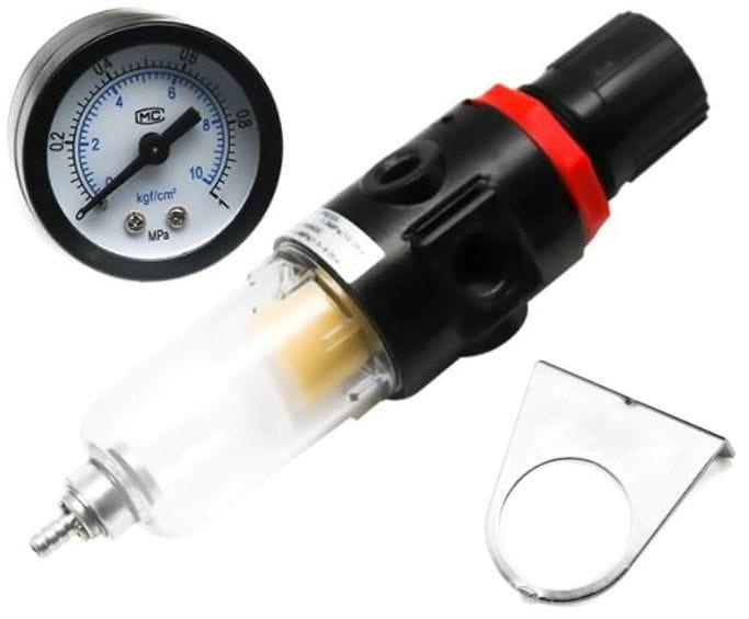 Reduktor ciśnienia z odwadniaczem KD1495 Profesjonalny reduktor ciśnienia z odwadniaczem firmy Kraft&Dele model KD1495 redukuje i utrzymuje stałe ciśnienie robocze niezbędne dla prawidłowej pracy urządzeń pneumatycznych m.in pistoletów lakierniczych, pistoletów do pompowania, czy kluczy udarowych. Reduktor ciśnienia urządzeń pneumatycznych filtruje, odwadnia i oczyszcza powietrze z zanieczyszczeń. Reduktor ciśnienia do urządzeń pneumatycznych wyposażony w kompletny blok przygotowania powietrza. Precyzyjny manometr z podwójną skalną bar i PSI w osłonie szkiełka umożliwia stałą kontrolę ciśnienia. Wytrzymała konstrukcja zapewnia długi okres bezawaryjnego użytkowania. Dane techniczne: Wysokość: 165mm Szerokość: 120mm Temperatura płynu i otoczenia: -4 °C - 60 °C Typ zaworu: Zawór przepływowy Filtracja: 0,040 mm (40 mikronów)Gwinty: 1/4" Maksymalne ciśnienie wlotowe: 10,0 bar Przepływ maksymalny: 1000 l/min Skład zestawu: Reduktor KD1495 Gwinty przyłączeniowe 1/4 Instrukcja obsługi Paragon/Faktura Parametry bezpieczeństwa - Bezpieczeństwo rodzaj ostrzeżenia