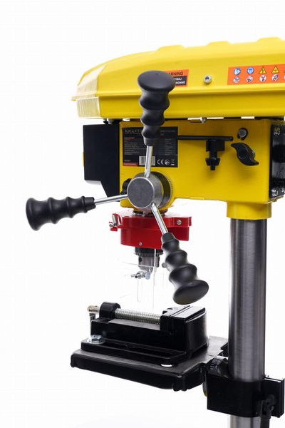 Wiertarka stołowa / kolumnowa marki Kraft&Dele przeznaczona jest do wiercenia otworów w różnego rodzaju materiałach typu: drewno, metal. Idealnie sprawdza się w warsztatach szkoleniowych, zakładach stolarskich i garażu. Model KD501 został wyposażony w niezawodny silnik o mocy 1850W, który zapewnia płynne działanie wrzeciona. Wiertarka posiada 9-stopniową regulacje prędkości 500-2500Rpm., pozwala ona nam na dostosowanie prędkości działania do wymagań materiału. Cechy: • Dzięki swojej konstrukcji zajmuje mało miejsca • Solidna podstawa • Wiercenie z ogranicznikiem głębokości • Maksymalna wydajność wiercenia 13mm • Regulacja wysokości podstawy Skład zestawu • Wiertarka stołowa KD501 • Instrukcja obsługi w Języku Polskim • Gwarancja 12 miesięcy Parametry bezpieczeństwa - Bezpieczeństwo rodzaj ostrzeżenia