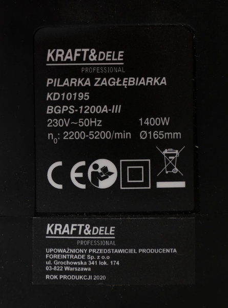 Zaawansowane narzędzie do cięcia, pilarka zagłębiarka KD10195 marki Kraft&Dele to solidne i wydajne urządzenie, które sprawdzi się doskonale w różnych zadaniach stolarskich i budowlanych. Zaprojektowana z myślą o precyzji i niezawodności, ta pilarka oferuje imponujące parametry techniczne. Parametry techniczne: Moc: 1400W - Dzięki wysokiej mocy silnika, pilarka zapewnia efektywne cięcie różnych materiałów. Napięcie: 230V/50Hz - Odpowiednie napięcie dla zastosowań domowych i profesjonalnych. Prędkość bez obciążenia: 2200 - 5200 obr/min - Regulowana prędkość umożliwia dostosowanie do różnych rodzajów materiałów i zadań. Rozmiar ostrza (tarczy): 165mm 24T - Ostrze o wysokiej jakości zapewnia precyzyjne i czyste cięcia. Zakres cięcia: 0'' - 47'' - Pilarka zagłębiarka KD10195 doskonale radzi sobie z różnorodnymi zadaniami cięcia. Głębokość cięcia max: 57mm - Osiągnięcie znacznej głębokości cięcia przy jednoczesnym utrzymaniu precyzji. Poziom wibracji: 3,263 m/s² (K: 1,5m/s²) - Minimalne wibracje, co przekłada się na komfort użytkowania. Poziom hałasu: LpA: 95dB(A) (K: 3dB), Lwa: 106dB(A) (K: 3dB) - Optymalizacja hałasu dla przyjemniejszej pracy. Ostrze: 165mm x 2,6mm x 20mm - Wymienne ostrze o wysokich parametrach tnących. Skład zestawu: Pilarka zagłębiarka KD10195 Oryginalne opakowanie Pilarka zagłębiarka KD10195 to nie tylko narzędzie, ale także partner do skutecznej i precyzyjnej obróbki drewna czy innych materiałów. Dzięki swojej solidnej konstrukcji i zaawansowanym parametrom technicznym, spełni oczekiwania zarówno profesjonalistów, jak i majsterkowiczów. Otrzymujesz nie tylko narzędzie, ale również pewność, że Twoje prace będą wykonane sprawnie i z najwyższą dokładnością. Parametry bezpieczeństwa - Bezpieczeństwo rodzaj ostrzeżenia