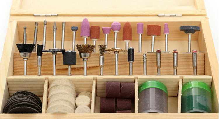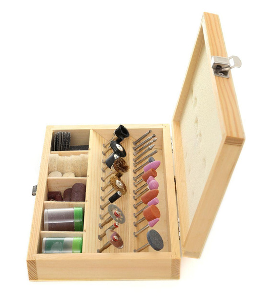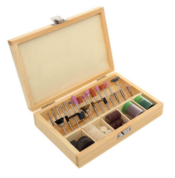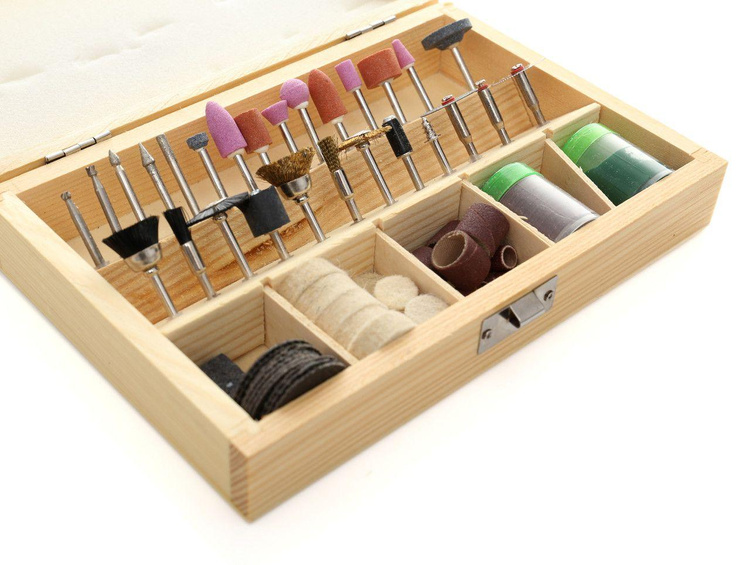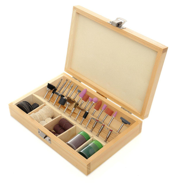 Uniwersalny zestaw akcesoriów do miniszlifierki to zestaw składający się ze 100 sztuk osprzętu różnego przeznaczenia.Zestaw zawiera akcesoria pozwalające na wykonywanie takich czynności jak: Rzeźbienie, Grawerowanie, Szlifowanie, Ostrzenie, Czyszczenie, Polerowanie, Cięcie, i wiele innych.Całość znajduję się w solidnej, drewnianej walizce. Cechy: • Wysoka jakość wykonania w przystępnej cenie • Produkt certyfikowany, co świadczy o jakości produktu ! • Idealny dla profesjonalistów i amatorów • Poręczna drewniana kasetka • Wszechstronne zastosowanie • Wszystkie metalowe elementy są utwardzane! Skład zestawu • Frezy węglikowe • Kamienie szlifierskie • Szczotki z tworzywa • Wałki gumowe do mocowania papieru • Szczotki stalowe • Głowica do tarcz korundowych • Głowica do filcu polerskiego • Kostka szlifierska • Tarcze korundowe 32mm • Papiery ścierne 6mm • Papiery ścierne 12mm • Filc polerski 25mm • Filce polerskie 12mm • Puszka pasty polerskiej • Tarcze korundowe 24mm i inne... • Oryginalne opakowanie • Paragon lub FV Parametry bezpieczeństwa - Bezpieczeństwo rodzaj ostrzeżenia