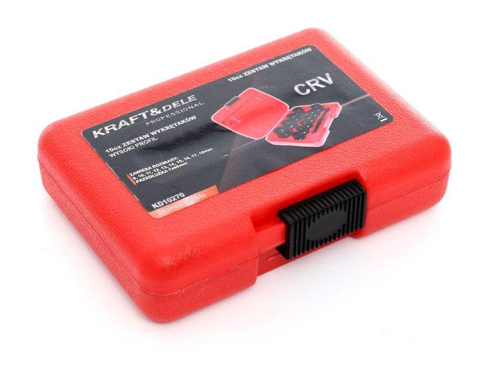 WYKRĘTAKI DO ZERWANYCH ŚRUB10 SZT KD10270 PARAMETRY TECHNICZNE PRODUKTU Marka: KRAFT&DELE Model: KD10270 Typ: wykrętaki Ilość elementów w zestawie: 10 szt. Waga: 1,2 kg Materiał: stal CrV Profil: wysoki SKŁAD ZESTAWU • Wykrętaki do zerwanych śrub KD10270 • Przedłużka 7x90 mm • Plastikowa walizka • Paragon lub FV. OPIS PRODUKTU Zestaw 10 wykrętaków o symbolu KD10270 marki Kraft&Dele. Specjalnie wyprofilowane nasadki umożliwiające zaklinowanie się na zerwanej śrubie bądź nakrętce, dzięki czemu następuje wykręcenie uszkodzonej śruby. W zestawie znajdziemy wykrętaki o wysokim profilu w 10 rozmiarach: 9, 10, 11, 12, 13, 14, 15, 16, 17 oraz 19 mm. Cały zestaw jest zapakowany w solidną plastikową walizkę, gdzie każde narzędzie ma swoje miejsce, pozwalając utrzymać porządek w warsztacie. Parametry bezpieczeństwa - Bezpieczeństwo rodzaj ostrzeżenia