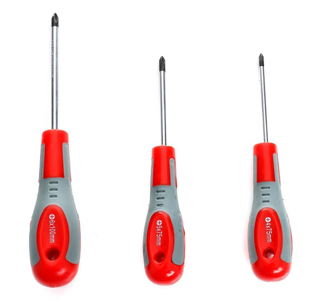 Zestaw wkrętaków został wykonany z wysokiej jakości materiałów w tym ze stali chromowo wanadowej groty posiadają satynowe wykończenie, zabezpieczające przed korozją, ponadto końcówki grotów są dodatkowo piaskowane i namagnesowane co umożliwia pewny chwyt łba śruby. Rączka została wykonana z tworzywa sztucznego i pokryta gumową powłoką, która gwarantuje pewne trzymane w dłoni. Cechy: • Materiały: stal CrV, wzmocniony plastik i guma. • Satynowe wykończenie groty. • Piaskowane i namagnesowane końcówki. • Wygodna rączka z gumową powłoką. • Różne rozmiary: 75, 125, 150mm. • Oryginalne opakowanie. Skład zestawu • 4*75mm • 5*125mm • 6*150mm • PH1(4mm)*75mm • PH1(5mm)*75mm • PH2(6mm)*100mm • oryginalne opakowanie Parametry bezpieczeństwa - Bezpieczeństwo rodzaj ostrzeżenia