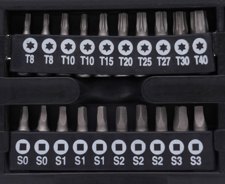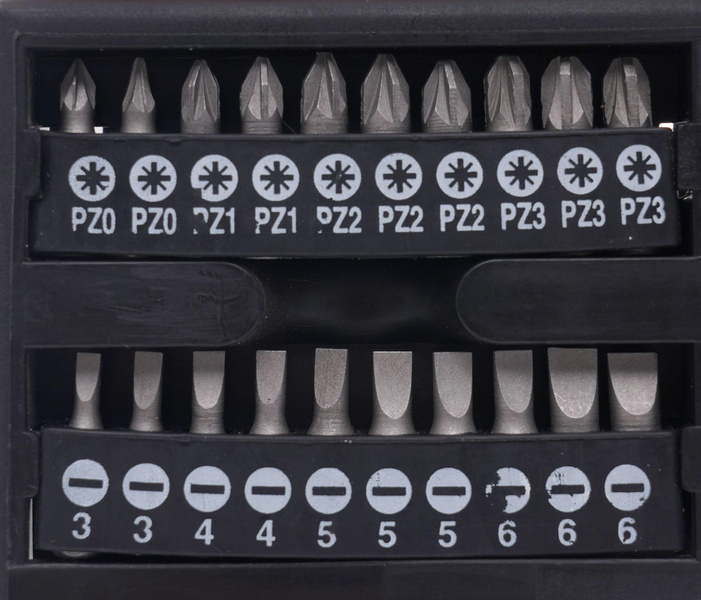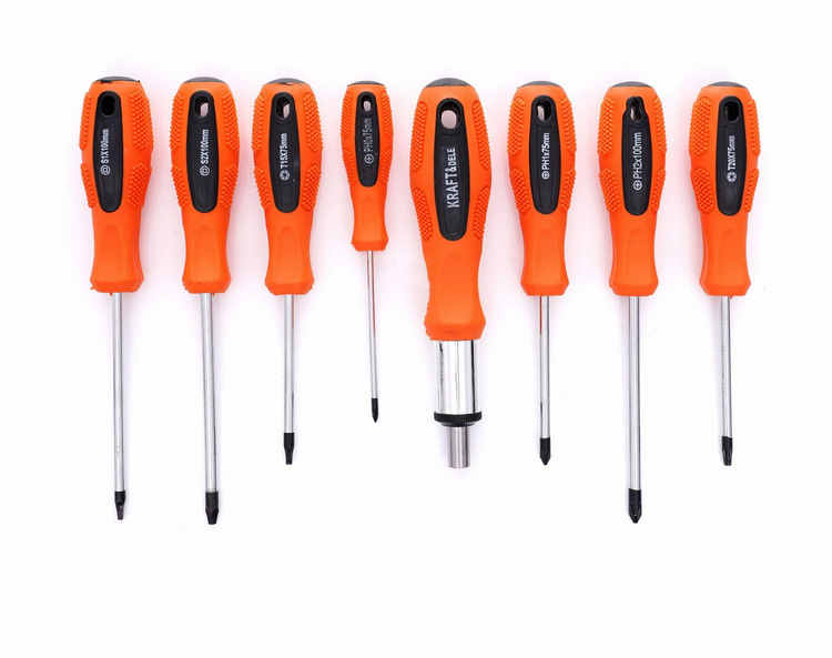 Zestaw śrubokrętów i bitów marki Kraft&Dele sprawdzi się w każdym garażu czy warsztacie. Dołączony w zestawie stojak ułatwia przechowywanie śrubokrętów.Użycie wysokiej jakości materiałów podczas produkcji śrubokrętów i bitów przedłuża ich okres żywotności. Zestaw składa się z 100 elementów. SKŁAD ZESTAWU: 8 wkrętaków płaskich: 8x150/6x150/6x100/5x125/5x100/5x75/4x100/3x75 mm6 wkrętaków krzyżowych: PH0x75/ PH1x75/PH1x100/PH1x125/PH2x100/PH2x150mm6 wkrętaków Philips: PH 0x75/1x75/1x100/1x125/2x100 /2x150mm4 wkrętaki Torx: T8x75/10x75/15x100/20x100 mm3 wkrętaki czworokątne: S0 0x75/1x75/1x100/2x100mm2 kątowe wkrętaki płaskie/Philips,8 wkrętaków precyzyjnych: płaskie:2,5x50/1,5x50 krzyżowe PH00x50/PH0x50 Typu torx T6x50/T7x50/T8x50/T9x50 mmwkrętak z wymiennymi końcówkami,10 bitów płaskich: 3/3/4/4/5/5/5/6/6/6mm10 bitów krzyżowych PH0/PH0/PH1/ PH1/ PH1/ PH2/ PH2/ PH2/ PH3/ PH310 bitów krzyżowych PZ0/PZ0/PZ1/ PZ1/ PZ1/ PZ2/ PZ2/ PZ2/ PZ3/ PZ310 bitów czworokątnych S0/S0/S1/S1/S1/S2/S2/S2/S3/S310 bitów imbus 2/2,5/3/3/4/4/5/5/5,5/6mm10 bitów torx T7/T8/T9/T10/T15/T20/T25/T27/T30/T40W zestawie również nasadki 5/6/7/8/9/10mmStojaka Parametry bezpieczeństwa - Bezpieczeństwo rodzaj ostrzeżenia