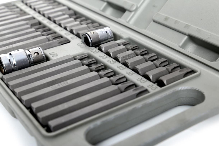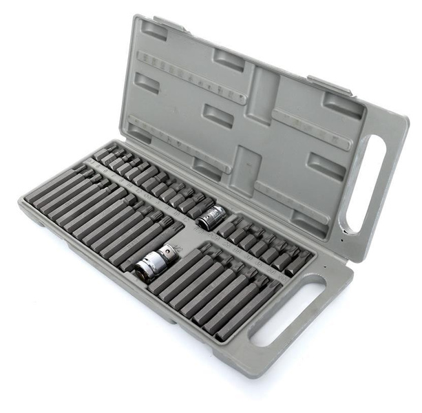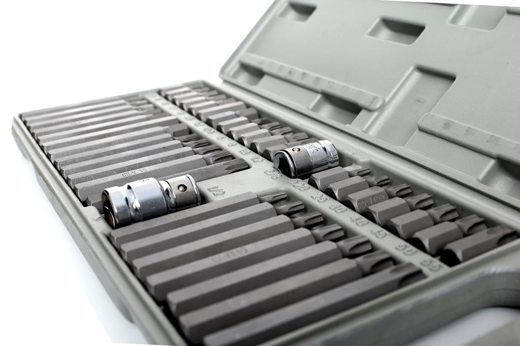 Profesjonalny zestaw bitów, służący do odkręcania śrub specjalnych typu: imbus, torx, spline.Trwałość , perfekcja wykonania, doskonałe materiały, stal wysokiej jakości to cechy techniczne produktów KRAFT&DELE. Ręczne i pneumatyczne narzędzia KRAFT&DELE są z sukcesem wykorzystywane przez specjalistów wielu dziedzin gospodarki. Trwałość i wytrzymałość predysponują nasz zestaw do zastosowań w intensywnych warunkach przemysłowych i serwisowych. Różnorodność bitów zapewnia możliwość wykonania wielu prac w specjalistycznych serwisach mechanicznych i samochodowych. Końcówki posiadają dwie długości 30 oraz 75 mm, mocowane w uchwycie sześciokątnym 10mm, dostosowanym do współpracy z grzechotką 1/2" oraz 3/8". - TORX 30mm: T20, T25, T30, T40, T45, T50, T55- TORX 75mm: T20, T25, T30,T40, T45, T50, T55 - SPLINE 30mm: M5, M6, M8, M10, M12- SPLINE 75mm: M5, M6, M8, M10, M12 - IMBUS (HEX) 30mm: 4mm, 5mm, 6mm, 7mm, 8mm, 10mm, 12mm- IMBUS (HEX) 75mm: 4mm, 5mm, 6mm, 7mm, 8mm, 10mm, 12mm- adaptery do grzechotek 3/8" i 1/2" Parametry bezpieczeństwa - Bezpieczeństwo rodzaj ostrzeżenia