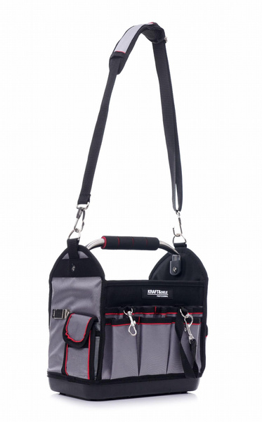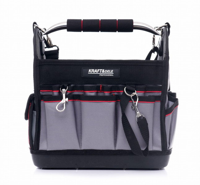 Torba narzędziowa, monterska marki Kraft&Dele to idealny organizer narzędziowy dla wszystkich monterów (elektryków, hydraulików, glazurników itp. ) Sztywne dno pokryte kompozytowym tworzywem zapewnia trwałość, a wiele kieszeni porządek oraz szybki dostęp do potrzebnych narzędzi.Kraft&Dele KD2040 została wyposażona w solidną metalową rączkę do przenoszenia w piankowym chwytem. Niezwykle pakowna dzięki kieszeniom wewnątrz i na zewnątrz.Gruby materiał, z którego jest wykonana, porządne szwy, a w miejscach narażonych na szczególne uszkodzenia metalowe nity zapewniają długoletnią trwałość.Wykonana z wytrzymałego materiału Regulowany pasek na ramię.Dużo wewnętrznych oraz zewnętrznych kieszeni zapewniających dobrą organizację Parametry bezpieczeństwa - Bezpieczeństwo rodzaj ostrzeżenia