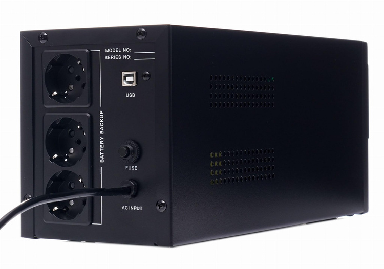 Zasilacze awaryjne UPS z wyświetlaczem LCD marki Kraft&Dele cechują się dużą niezawodnością i wytrzymałością. Zasilacze UPS (ang. uninterruptible power supply – zasilacz bezprzerwowy) – urządzenie lub system, którego funkcją jest utrzymanie zasilania innych urządzeń elektrycznych lub elektronicznych w przypadku zaniku lub nieprawidłowych parametrów zasilania sieciowego. Urządzenia tego typu stosowane są najczęściej do zasilania komputerów, a zwłaszcza serwerów. Dzięki ich zastosowaniu, w przypadku awarii zasilania zmniejsza się ryzyko utraty danych znajdujących się aktualnie w pamięci operacyjnej komputera, a nawet uszkodzenia urządzeń pamięci masowej. Zasilacze awaryjne UPS znajdą zastosowanie w ochronie takich urządzeń jak:komputeryserwerysystemy alarmowekasy fiskalnesprzęt RTVurządzenia medyczne PARAMETRY TECHNICZNE: MODEL: KD1929Pojemność: 1500VAMoc: 900WNapięcie wejściowe: 140 - 300VACNapięcie wyjściowe: 220V±10%(tryb baterii)Czas transferu: Typowy 4 - 8msCzęstotliwość: Symulowana fala sinusoidalnaIlość i rodzaj baterii:. 7AHx2Czas ładowania: 4 - 6 godzin do 90% pojemnościRozmiar(mm): 370x137x165mmWaga(KG): 9,5kgWilgotność: 0-90% RH @ 0 - 40°C non - condensingHałas: Mniej niż40dB Parametry bezpieczeństwa - Bezpieczeństwo rodzaj ostrzeżenia