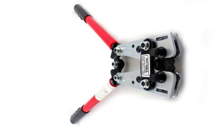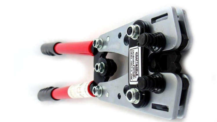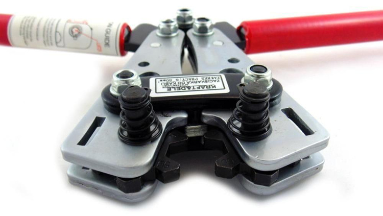 Uniwersalny zaciskacz do tulejek kabli marki Kraft&Dele o symbolu KD10257.Wykonany z hartowanej stali SCM-40. Sprawdzona i trwała konstrukcja pozwala używać narzędzia przez nawet najbardziej wymagających użytkowników.Dla poprawienia chwytu rączka została pokryta antypoślizgową gumą, a specjalny system dźwigni pozwala osiągnąć zacisk nawet do 8 ton przy wykorzystaniu minimalnego użycia energii. Zakres pracy narzędzia wynosi od 6 do 50mm². Długość: 390 mmZacisk: sześciokątny (HEX)Waga: 1,3 kgZakres pracy: 6-50mm²Matryce: 6-10-16-25-35-50 mm²Zacisk: 8 tonAntypoślizgowe rączki: tak Parametry bezpieczeństwa - Bezpieczeństwo rodzaj ostrzeżenia