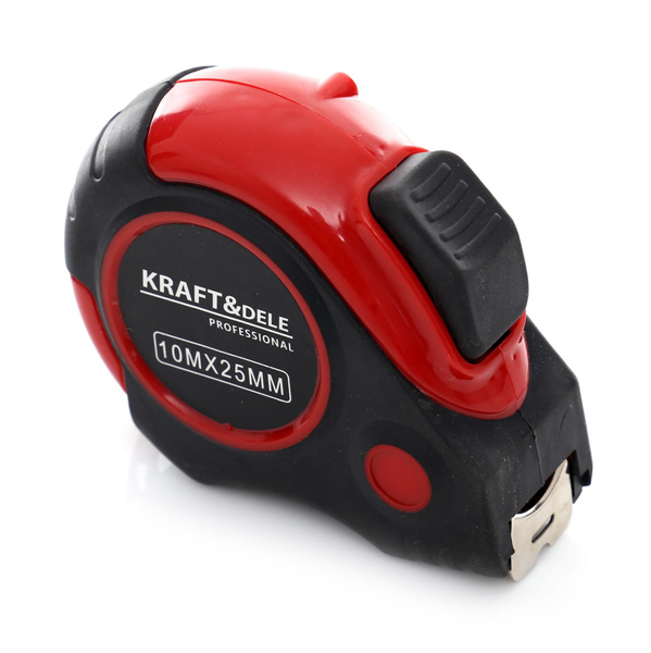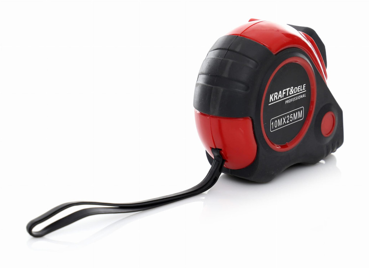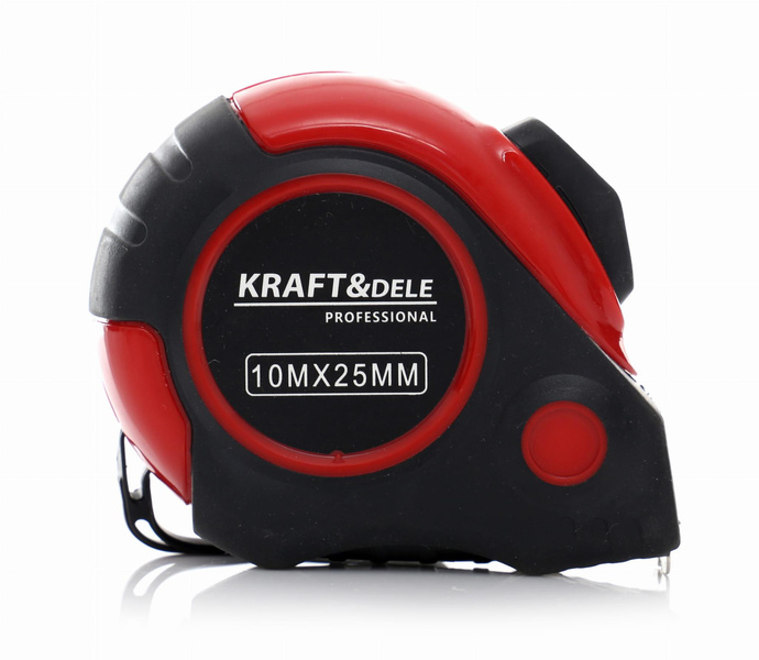 TAŚMA MIERNICZA - MIARA10 METRÓW PARAMETRY TECHNICZNE PRODUKTU Marka: KRAFT&DELE Model: KD10294 Typ narzędzia: taśma miernicza Rozmiary: 10M x 25mm Antypoślizgowy uchwyt: TAK Automatyczna blokada taśmy: TAK OPIS TOWARU Profesjonalna taśma miernicza polskiej marki Kraft&Dele. Dostępna w wariantach różniących się długością oraz szerokością miary.Narzędzie wyposażone w system automatycznej blokady taśmy; po wciśnięciu spustu, blokada zostaje zwolniona a taśma się samoczynnie zwija.Miara wykończona antpoślizgową, gumową powłoką, zapewniającą dobry chwyt w każdych warunkach pracy. Taśma wykonana ze stali. Parametry bezpieczeństwa - Bezpieczeństwo rodzaj ostrzeżenia