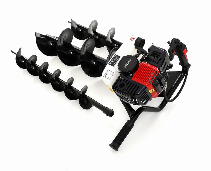 WIERTNICA SPALINOWA5,2 KM / 3,8kWKD174 PARAMETRY TECHNICZNE PRODUKTU Marka: KRAFT&DELE Model: KD174 Silnik: dwusuwowy Moc silnika: 3,8 kW / 5,2 KM Cylinder: chromowany Chłodzenie silnika: powietrze Pojemność zbiornika paliwa: 1,2L Rodzaj paliwa: benzyna - mieszanka Mieszanka paliwowo-olejowa: 25:1 Obroty silnika: 3000 RPM Wiertła w zestawie: NIE Waga: 10 kg SKŁAD ZESTAWU Wiertnica spalinowa KD174 Butelka do mieszanki Zestaw kluczy Oryginalne opakowanie Paragon lub FV VAT Instrukcja w j. polskim OPIS I CECHY TOWARU Wiertnica spalinowa o symbolu KD174 marki Kraft&Dele. Dzięki silnikowi o mocy 5,2 KM i wysokich maksymalnych obrotach poradzi sobie nawet w najcięższym terenie, niezależnie od sytuacji i warunków pracy. Nasze urządzenie opiera się na sprawdzonej konstrukcji, która w połączeniu z najwyższej jakości materiałami sprawia, że wiercenie otworów jest szybkie i bezproblemowe. Świder idealnie nadaje się do wiercenia otworów w ziemi pod drzewka, słupki ogrodzeniowe, sadzonki oraz we wszelkich zastosowaniach na budowie. Konstrukcja pozwala na używanie wiertnicy przez jedną osobę. Ze względów bezpieczeństwa, wyposażyliśmy urządzenie w specjalny wyłącznik bezpieczeństwa, który wyłącza urządzenie w przypadku utraty chwytu przez użytkownika. Cechy: - Duża moc silnika - Solidna i sprawdzona konstrukcja - Chromowany cylinder WIERTNICA NIE POSIADA WIERTEŁ - KUPUJESZ SAM SILNIK. MOŻLIWOŚĆ ZAKUPU KOMPLETU W ODRĘBNEJ OFERCIE. Kupując od nas, kupujesz towar bezpośrednio od producenta! Na nasz sprzęt dajemy 12 miesięcy gwarancji, realizowanej u nas w serwisie. Posiadamy bazę części do naszych urządzeń. Parametry bezpieczeństwa - Bezpieczeństwo rodzaj ostrzeżenia
