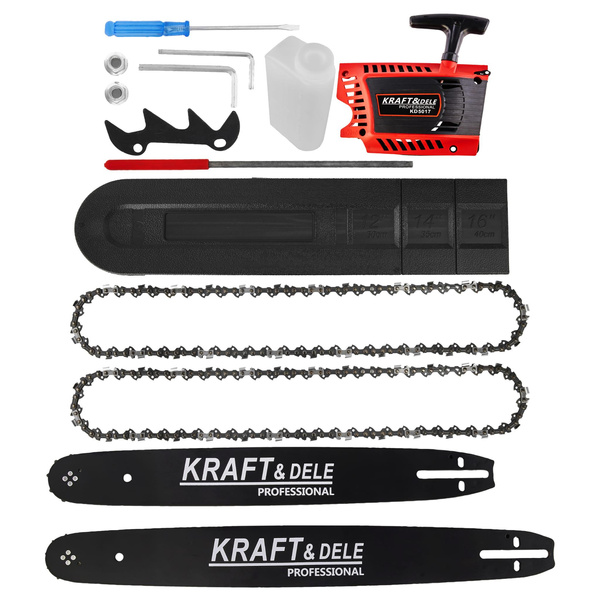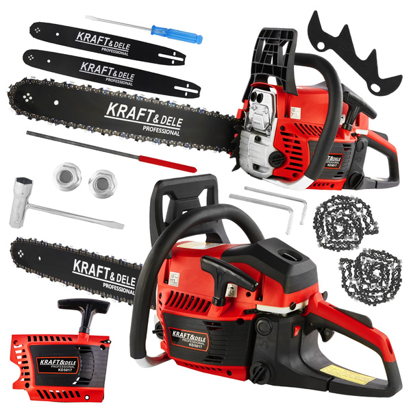 PIŁA SPALINOWA 5,9KM / 45CM KD5017 PARAMETRY TECHNICZNE: Piła spalinowa marki KRAFT&DELE o mocy 5,9 KM należy do najbardziej dynamicznych o zwartej i mocnej konstrukcji. Sprawdza się niezawodnie nawet po latach użytkowania prac budowlanych w drewnie, prac w gospodarstwie i rolnictwie, w sadzie. Uniwersalna - doskonała do prac przydomowych i leśnych. Mocna, trwała i niezawodna pilarka, która spełni najwyższe wymagania. Przeznaczona m.in. do: przygotowywania drewna opałowego, prac budowlanych w drewnie, prac w gospodarstwie i rolnictwie, w sadzie, ścinki drzew, pielęgnacji drzew, itp. Piła cechuje się bardzo dobrą jakością wykonania oraz bardzo dobrymi podzespołami użytymi do jej budowy. Piła posiada system łatwego startu EASY START - wystarczy 1 pociągnięcie do odpalenia oraz system tłumienia drgań potrzebny przy pracy z grubym drewnem. Uniwersalna - doskonała do prac przydomowych i leśnych. Mocna, trwała i niezawodna pilarka, która spełni najwyższe wymagania Do napędzania piły stosuje się mieszankę paliwową przeznaczoną do silników dwusuwowych. Benzynę należy zamieszać z olejem w proporcjach podanych przez producenta. Proporcja mieszanki stosowanej w urządzeniu to 1:25 (1 część oleju + 25 części benzyny). Zawartość zestawu: Piła łańcuchowa - spalinowa KRAFT&DELE KD5017 Osłona prowadnicy Zestaw kluczy (klucz do świec oraz prowadnicy, wkrętak, imbusy) Zbiornik do mieszania oleju z benzyną Pilnik Łańcuch Prowadnica o długości 45cm Paragon lub FV. Oryginalne opakowanie Parametry bezpieczeństwa - Bezpieczeństwo rodzaj ostrzeżenia