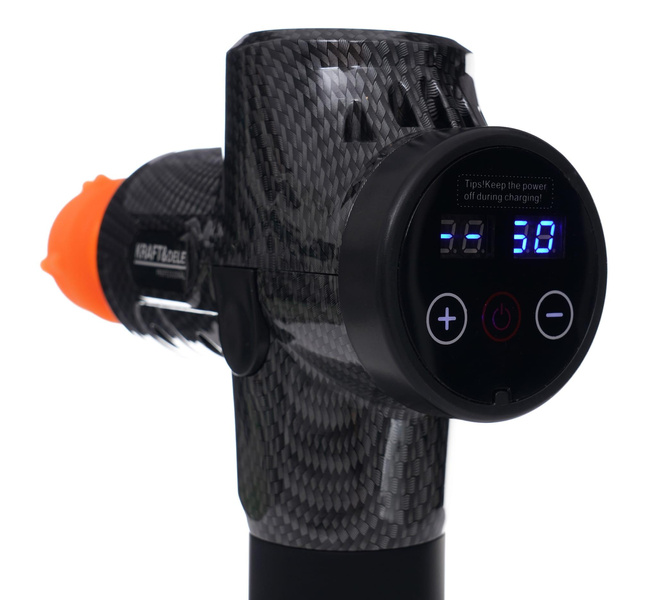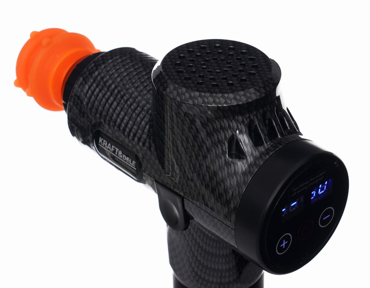 MASAŻER 125W 8 GŁOWIC WYMIENNYCH 30 RÓŻNYCH PRĘDKOŚCI KD3082 Wielofunkcyjny masażer marki Kraft&Dele model KD3082 służy do głębokiego masażu. Poprzez głęboką i silną stymulację wibracji o wysokiej częstotliwości, łagodzi sztywne mięśnie, rozluźnia tkanki miękkie, łagodzi zmęczenie i przywraca dobrą kondycję fizyczną. Urządzenie doskonale wspomaga proces regeneracji mięśni oraz pomaga w redukcji stresu. Sterowanie masażerem odbywa się za pomocą klarownego ekranu dotykowego LCD. Masażer jest intuicyjny i niezwykle prosty w obsłudze, umożliwiając obsługę jednym palcem. ZALETY: Cichy bez szczotkowy silnik Łatwy w obsłudze Akumulator litowo-jonowy Czas pracy od 1 do 6 h - w zależności od siły nacisku, prędkości Wyjmowany zwalniacz baterii Bezprzewodowy 30 różnych prędkości Zmniejsza stres Łagodzi bóle mięśni Poprawia swobodę i elastyczność ruchów Lekki Dzięki 30-stopniowej regulacji prędkości można wybrać prędkość wibracji (1200-3500/min), która odpowiada Twoim potrzebom, aby osiągnąć najbardziej komfortowy stan. Wydajny silnik o mocy 125W, dzięki unikalnej technologii redukcji hałas. Bez szczotkowy silnik o wysokim momencie obrotowym. Pistolet wysyła potężne impulsy, które wnikają głęboko w napięte mięśnie i zapewniają ciche środowisko do masażu (<40 dB). RODZAJE GŁOWIC: Głowica typu PIŁKA - mocny nacisk, przeznaczona jest do większych partii mięśni i ciała np. brzuch lub ramiona Głowica typu U-KSZTAŁTNA - do masażu mięśni w okolicach kręgosłupa Głowica typu ŁOPATKA - przeznaczona do większych partii mięśniowych, izoluje nacisk na mniejszej powierzchni Głowica typu PŁASKA - dociera do mięśni głębokich, o mocno zbitej strukturze jak plecy czy mięśnie czworogłowe uda oraz innych głębokich tkanek Głowica typu KORKOWA - głowica o najbardziej sprężystej budowie, przeznaczona do masażu mięśni w okolicach kości Głowica typu POCISK - najlepsze rozwiązanie do mocnego punktowego masażu głowica PUNKTOWA - idealna do delikatnego masażu bardzo spiętych partii mięśni SKŁAD: Masażer 125W KD3082 8 głowic wymiennych Etui Oryginalne opakowanie Paragon / faktura Gwarancja Parametry bezpieczeństwa - Bezpieczeństwo rodzaj ostrzeżenia