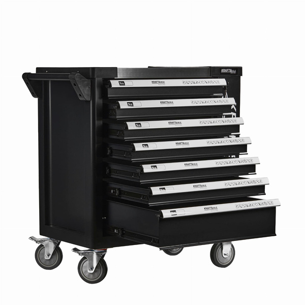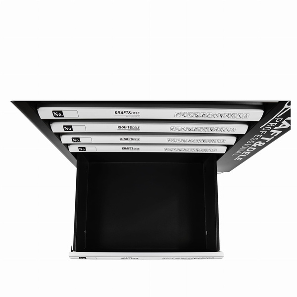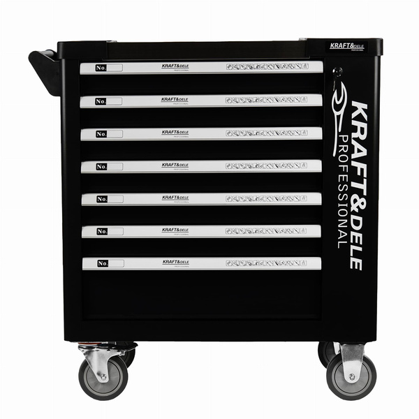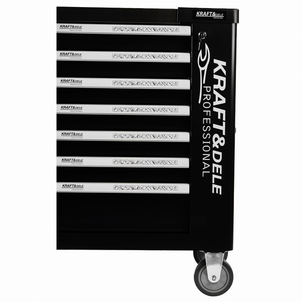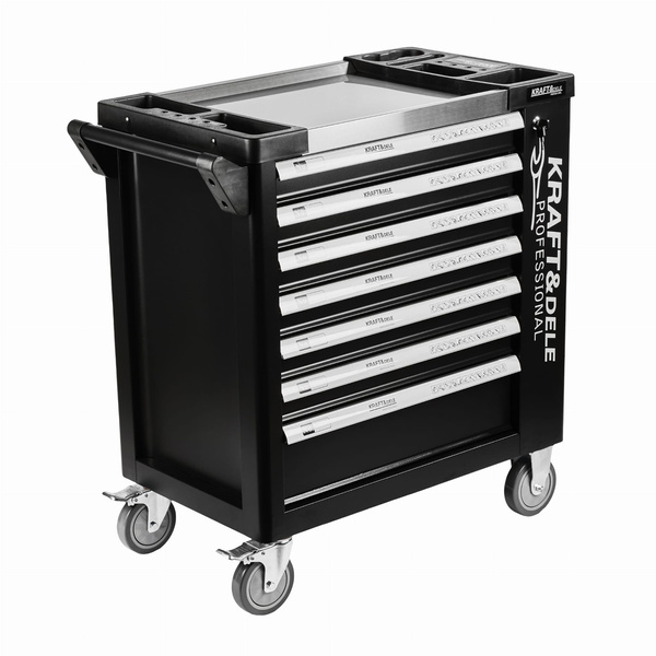 WÓZEK WARSZTATOWY / SZAFKA NARZĘDZIOWA 7 SZUFLAD OPIS I CECHY TOWARU Profesjonalny wózek warsztatowy / szafka narzędziowa marki Kraft&Dele to idealne rozwiązanie jeżeli chcesz utrzymać porządek w garażu lub warsztacie. Nasza szafa znacznie ułatwi ci prace, zwiększy jej komfort, oraz efektywność. Zapewni lepszą organizację i wygodę podczas różnych prac w warsztacie. Posiada 7 szuflad na łożyskach kulkowych i dwupoziomowym składzikiem zamykanym na kluczyk. Szuflady posiadają prowadnice oraz kulkowy mechanizm ślizgowy ułatwiają wysuwanie. Dodatkowo każda z szuflad posiada blokadę. Konstrukcja umożliwia montaż imadła na blacie oraz dodatkowych uchwytów na ręcznik lub chemię po obu stronach wózka. Wózek wyposażony w 2 skrętne kółka, które mają automatyczną blokadę oraz hamulec, dzięki któremu przemieszczenie się szafy jest niemożliwe. Zapewnia komfort bezpieczeństwa nawet na małych pochyłościach. Szuflady zostały pokryte miękkim i elastycznym tworzywem EVA, które zachowuje swoje właściwości nawet przy różnych temperaturach. Blat wózka wykonany ze stali, odpornej na środki chemiczne, wysoką temperaturę oraz uszkodzenia. Po obu stronach blatu mamy otwory na wkręty, śrubki a nawet na kubek z pyszną kawą. WYMIARY CAŁKOWITE: Wysokość: 72 cm Długość: 77 cm Szerokość: 46 cm WYMIARY 1-6 SZUFLAD: Szerokość szuflady: 53 cm Głębokość szuflady: 39 cm Wysokość szuflady: 5 cm WYMIAR 7 SZUFLADY: Szerokość: 53 cm Głębokość: 39 cm Wysokość: 19 cm 2x kluczyk Waga: 49 kg SKŁAD: Wózek warsztatowy / szafka narzędziowa KD1070 Oryginalne opakowanie Paragon / Faktura Gwarancja Kupując od nas, kupujesz towar bezpośrednio od producenta! Na nasz sprzęt dajemy 12 miesięcy gwarancji, realizowanej u nas w serwisie. Posiadamy bazę części do naszych urządzeń. Potrzebujesz pomocy? Masz pytania?Zadaj pytanie a my odpowiemy niezwłocznie, najciekawsze pytania i odpowiedzi publikując dla innych.