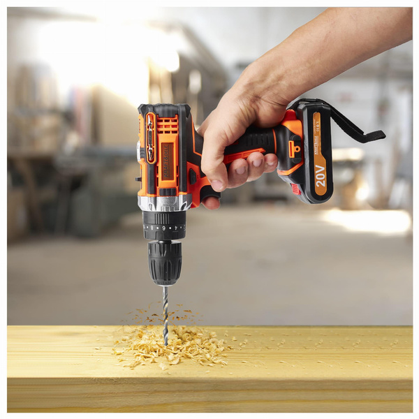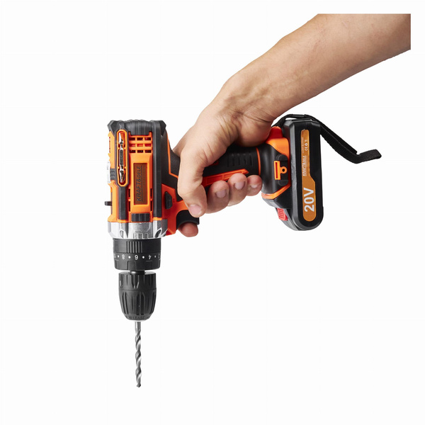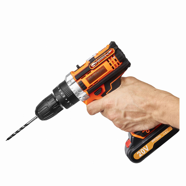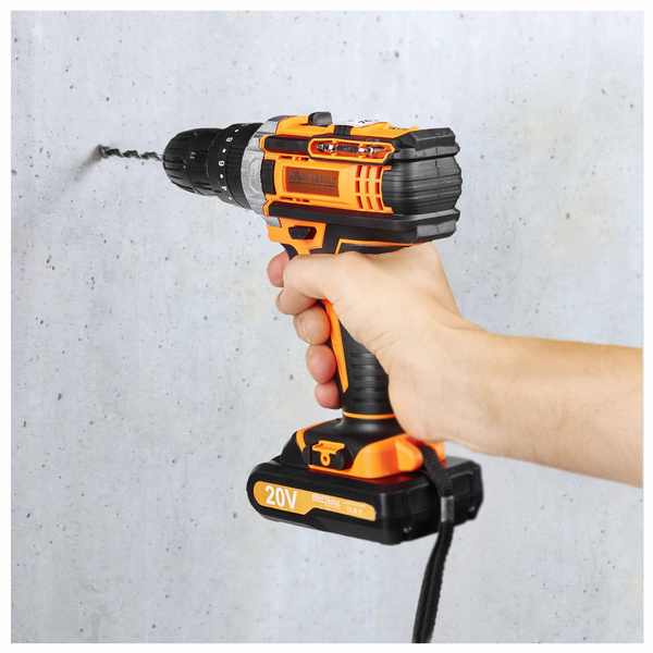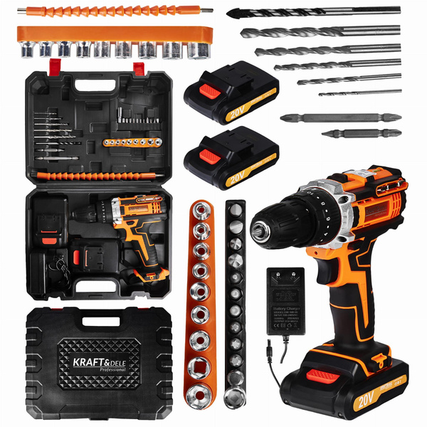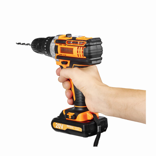 WKRĘTARKA AKUMULATOROWA LCD + 2 x 20V 2,0Ah18 pozycji sprzęgła KD3086 OPIS TOWARU Wkrętarka akumulatorowa marki Kraft&Dele o symbolu KD3086 to profesjonalne urządzenie, wyróżniające się ergonomiczną budową, sprawdzoną i solidną niewielką konstrukcją oraz wysoką wytrzymałością. Wkrętarka sprawdzi się w każdym gospodarstwie domowym, warsztacie i firmie.Dodatkowa lampka LED doświetla i ułatwia precyzyjną pracę w słabo doświetlonych warunkach. Wkrętarka umożliwia regulację obrotów w płynnym zakresie, na dwóch przełożeniach. Na 1 biegu obroty możemy regulować w zakresie 0 - 350 rpm, na drugim 0 - 1300 rpm. Może być stosowana jako w pełni funkcjonalna wiertarka lub wkrętarka.Dla wygody oraz bezpieczeństwa użytkowania, znaczna część urządzenia została pokryta gumową powłoką. Gwarantuje to lepszy chwyt oraz wzmocnienie przed upadkami. Cały zestaw zapakowany w wygodną i poręczną walizkę transportową! CECHY: 2 x akumulator 20V Maksymalne napięcie akumulatora: 20V Obroty bieg I: 0-350rpm Obroty bieg II: 0-1300rpm 18 stopniowe sprzęgło Podświetlenie LED Wskaźnik naładowania baterii Całość zapakowane w praktycznej walizce PARAMETRY TECHNICZNE PRODUKTU Model: KD3086 Typ urządzenia: wkrętarka akumulatorowa Napięcie: 20V Akumulator: 20V Średnica uchwytu: 10 mm Obroty: 0-350 / 0-1300 rpm Sprzęgło: 18 pozycji Maksymalny moment obrotowy: 30Nm Regulacja obrotów: lewo/prawo Czas ładowania: 3h Lampka LED: tak Waga: ok. 2 kg Maksymalna średnica wiercenia: Drewno: 25mm Stal: 10mm SKŁAD ZESTAWU • Wkrętarka akumulatorowa KD3086 • 2x Akumulator 20V • Ładowarka • 9 nasadek • 1 miękkie złącze • 10 bitów śrubowych • 1złącze śrubowe • 4 wiertła • Solidna walizka • Instrukcja obsługi w j. polskim • Gwarancja 12 miesięcy • Paragon lub FV. Oferujemy państwu bardzo wygodny system gwarancyjny. Dajemy 12 miesięcy gwarancji ! W razie problemów wystarczy do nas zadzwonić, a następnego dnia zawita do Was kurier po uszkodzony towar! Potrzebujesz pomocy? Masz pytania?Zadaj pytanie a my odpowiemy niezwłocznie, najciekawsze pytania i odpowiedzi publikując dla innych.