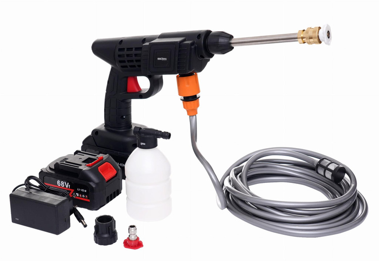 MYJKA WYSOKOCIŚNIENIOWA AKUMULATOROWA 2 x 68V KD663 Myjka wysokociśnieniowa akumulatorowa marki Kraft&Dele model KD663 gwarantuje skuteczne usunięcie wszelkich zabrudzeń. Bezprzewodowa, przenośna konstrukcja, idealna do użytku zarówno w domu, jak i w ogrodzie czy podczas wyjazdów. Używając Naszej myjki z łatwością umyjesz okna, auto, a także podlejesz rośliny. Myjka została wyposażona w 3 tryby pracy - od delikatnego podlewania roślin po intensywne czyszczenie uporczywych plam. Produkt wyposażony jest w dwa potężne akumulatory o mocy 68V , co zapewnia długą i efektywną pracę bez ciągłego ładowania. Urządzenie zostało wykonane z wysokiej jakości materiałów, konstrukcja pistoletu typu 54, zapewnia doskonałe połączenie estetyki i komfortu pracy. Połączenie rury wodnej z korpusem pistoletu jest gwintowane co znacznie zwiększa wytrzymałość produktu. W zestawie znajduję się ładowarka, myjka posiada inteligentną funkcję ładowania co oznacza: czerwone światło podczas ładowania, zielone gdy bateria jest w pełni naładowana. Wielką zaletą Naszej myjki jest to że posiada ona funkcję spieniania. Do zbiornika który znajduję się w zestawie wlewany płyn wraz z wodą, następnie montujemy. Funkcja ta silnie działa na zabrudzenia i skutecznie je rozpuszczają. SKŁAD ZESTAWU: Myjka wysokociśnieniowa akumulatorowa KD663 2 x bateria 68V Ładowarka Wąż Przedłużka Zbiornik Filtr Złącze 2 x Dysze Walizka Potrzebujesz pomocy? Masz pytania?Zadaj pytanie a my odpowiemy niezwłocznie, najciekawsze pytania i odpowiedzi publikując dla innych.