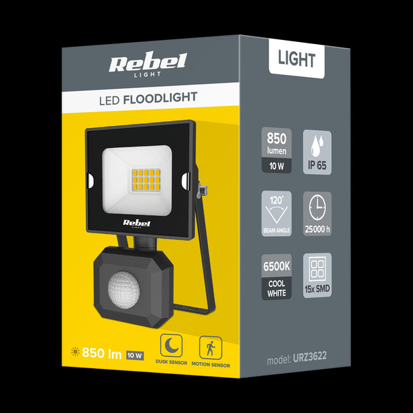 Reflektor led 10W Rebel z sensorem zmierzchu i ruchu, 6500K, 230V