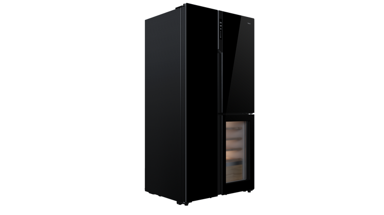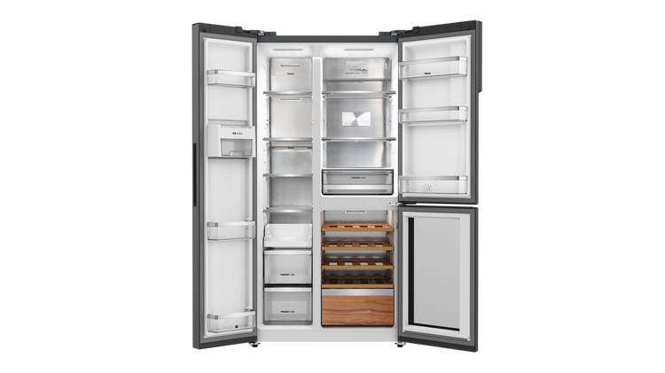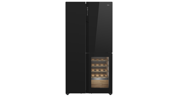 - Technologia LongLife No Frost, Silnik inwerterowy o wysokiej wydajności, Drzwi otwierane do 90°, Duża pojemność, Zintegrowana winiarka na 18 butelek, W zestawie stojak na butelki, kostkarka do lodu Twister i tacka na kostki lodu.