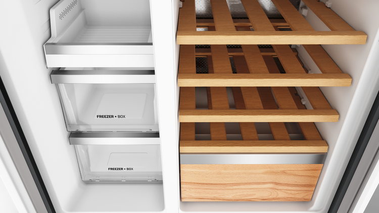 Poznaj wyjątkowe połączenie, które wyniesie codzienne użytkowanie na nowy poziom.Trzy urządzenia w jednym: chłodziarko-zamrażarka o dużej pojemności z wbudowaną chłodziarką na wino mieszczącą aż 18 butelek. Najnowsza technologia dla Twoich produktów spożywczych i ulubionych win – funkcjonalność, która robi różnicę.