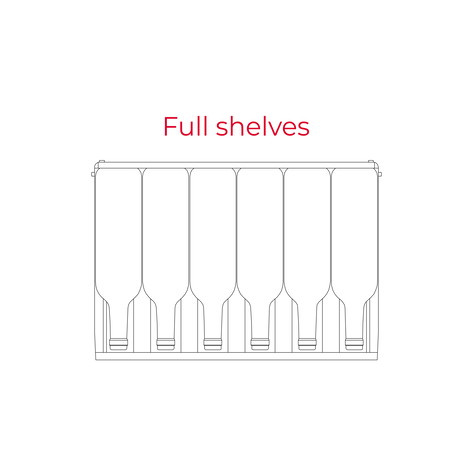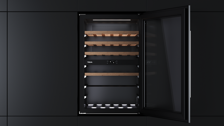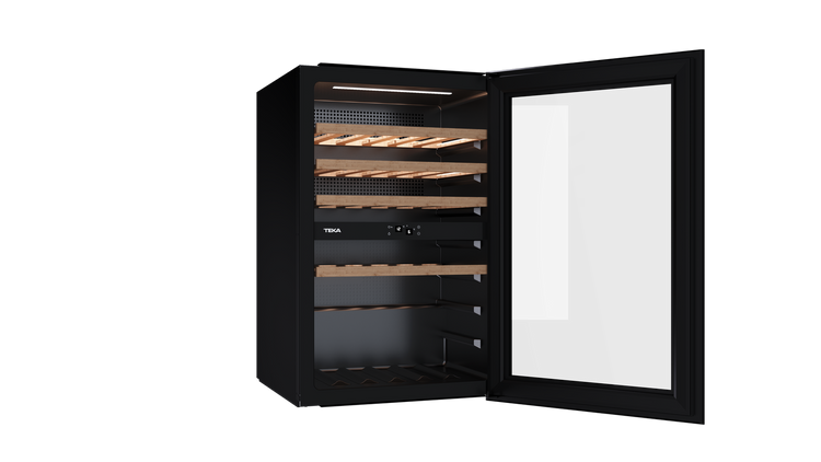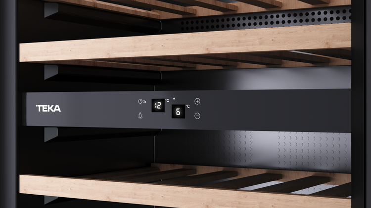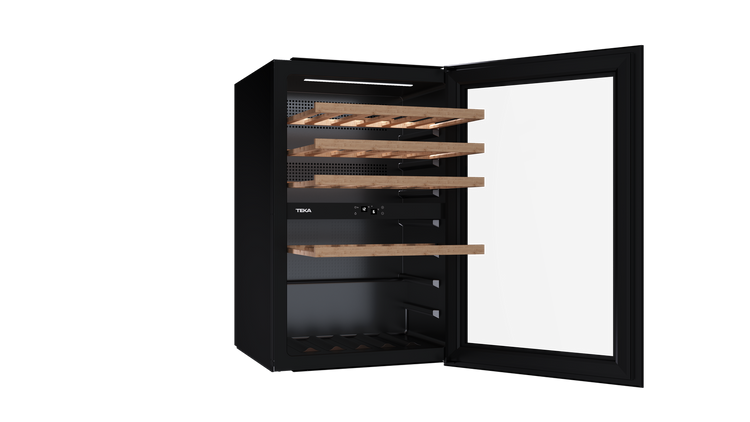 Drewniane półki z prowadnicami, które redukują drgania i utrzymują aromat dojrzałego wina. Uniwersalność chłodziarki pozwala na regulację wysokości jej półek, aby stworzyć miejsca na butelki o różnych rozmiarach.