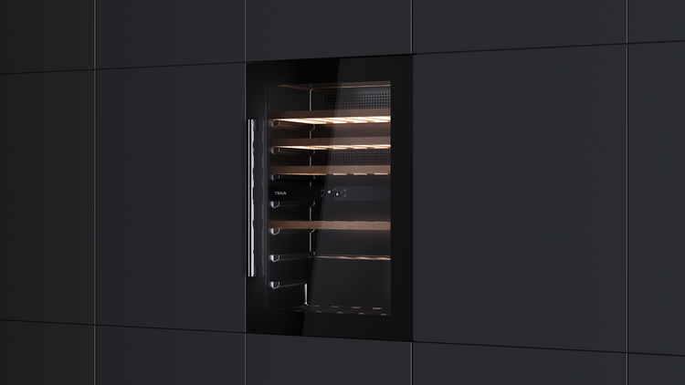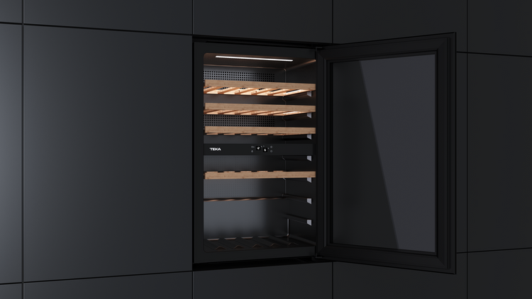 Eleganckie i jednolite oświetlenie idealne do przechowywania wina. System oświetleniowy można ustawić tak, aby aktywował się podczas otwierania drzwi lub świecił ciągle.