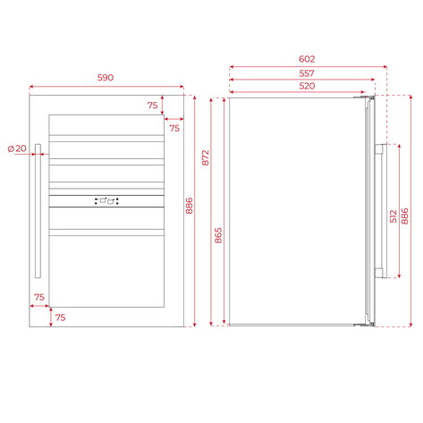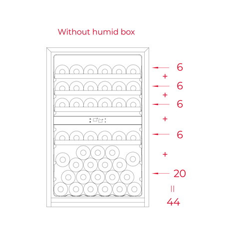 - Wyświetlacz panelu sterowania wewnątrz, Elektroniczne ustawianie temperatury, Pojemność: 44 butelki, Regulowana wysokość nóżek z przodu i z tyłu, Podświetlenie wnętrza - LED.