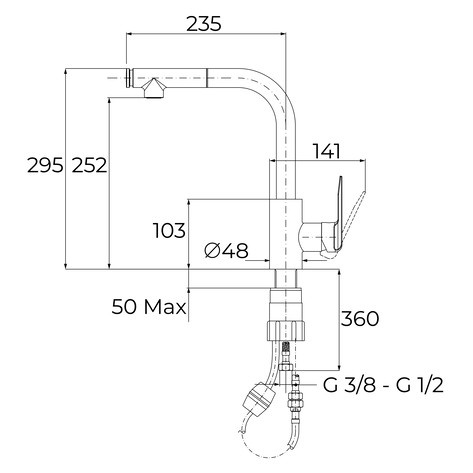 - Bateria mieszakowa z wyciąganą wylewką i zmiennym strumieniem wody