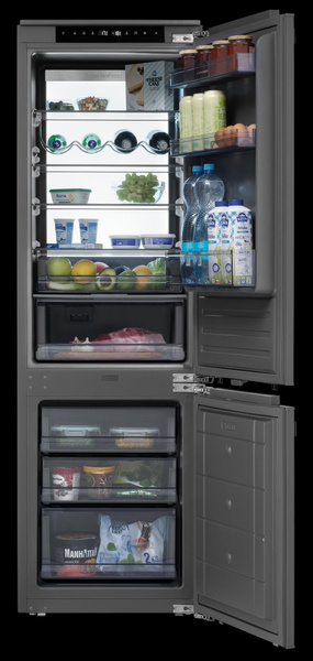 Lodówka do zabudowy Concept LKV7360 z serii Dark IN wyróżnia się eleganckim i nowoczesnym wzornictwem z ciemnoszarym wnętrzem, uzupełnionym elementami z ciemnej stali nierdzewnej. Doskonale komponuje się z nowoczesnymi kuchniami i prezentuje się niezwykle stylowo przy każdym otwarciu. Dzięki prostej instalacji idealnie wtapia się w zabudowę meblową.