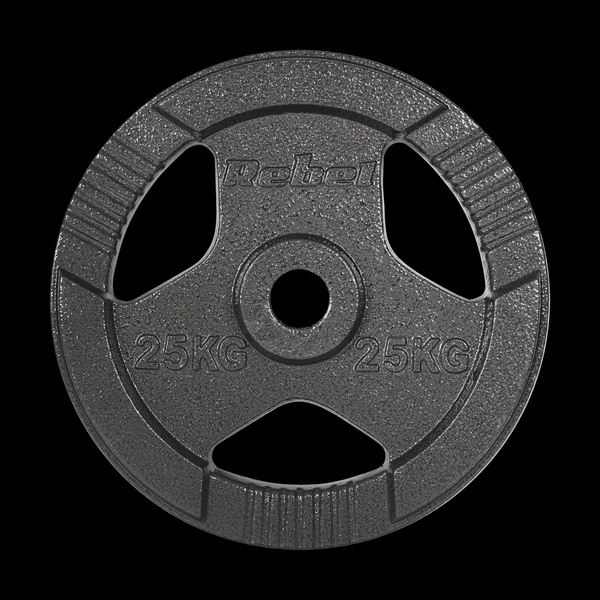 Obciążenie żeliwne olimpijskie 25kg, otwór 51mm, talerz z uchwytami, REBEL ACTIVE