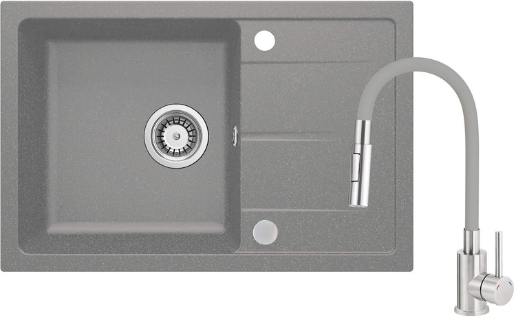 Zlewozmywak granitowy z baterią z giętą wylewką (ZRDGS113) - Deante