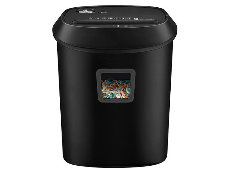 Niszczarka może niszczyć do 12 kartek jednocześnie, co pozwala szybko i sprawnie pozbyć się niepotrzebnych dokumentów w biurze.