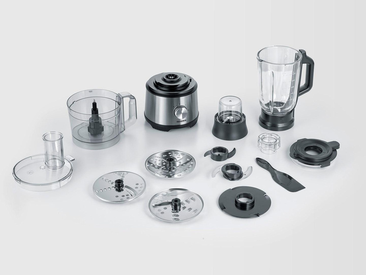 SEVERIN MULTI ROBOT KUCHENNY INOX, SZKLANY MIKSER KIELICHOWY 1,5 L, MŁYNEK 140 ML, POJEMNIK ROBOCZY 1,5 L, MOC 1200W KM3892