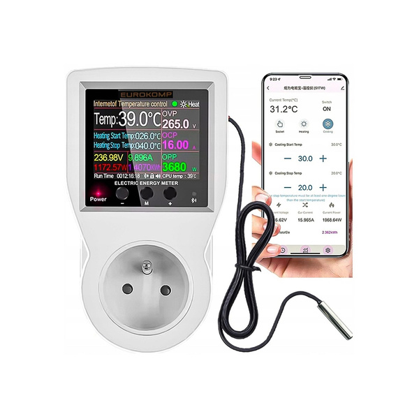 Termostat z gniazdem 230V, licznik energii, WiFi Tuya