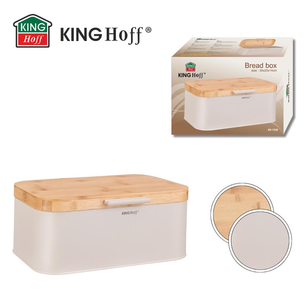 - Chlebak KINGHoff w eleganckim beżowym kolorze z pokrywą z naturalnego bambusa to stylowe i praktyczne rozwiązanie do przechowywania pieczywa. Wykonany z metalu malowanego proszkowo, zapewnia trwałość i odporność na zarysowania, a bambusowa pokrywa dodaje