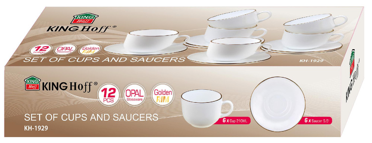 Zestaw filiżanek, 12 el., okrągłe, opal, biały ze złotym zdobieniem, KINGHoff, KH-1929 KH-1929