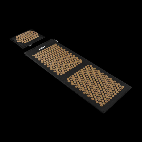Mata zdrowotna ECO z kolcami do akupresury z poduszką, 130x50cm, XXL, złote kolce, Rebel Active