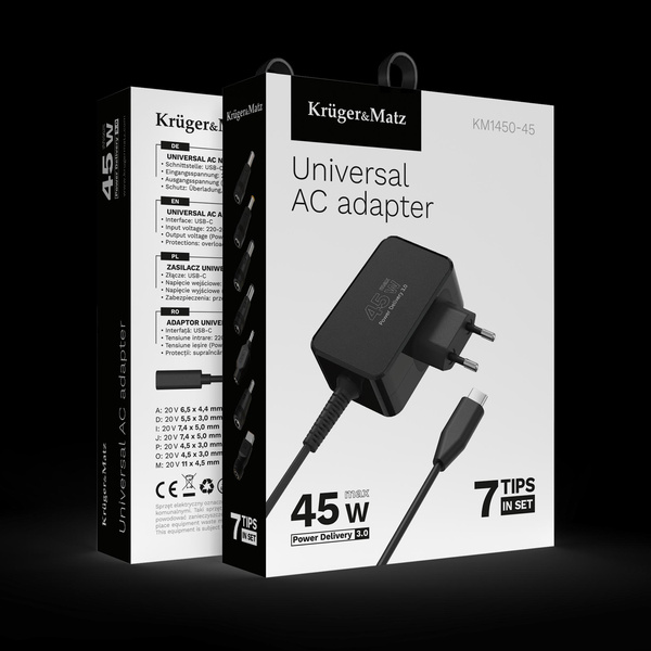 Zasilacz uniwersalny Kruger&Matz 45W z funkcją Power Delivery 7 końcówek