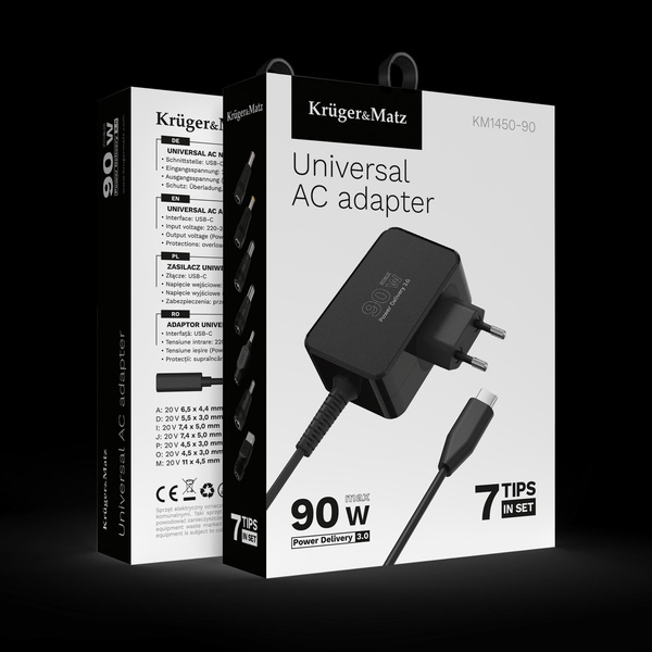Zasilacz uniwersalny Kruger&Matz 90W z funkcją Power Delivery 7 końcówek
